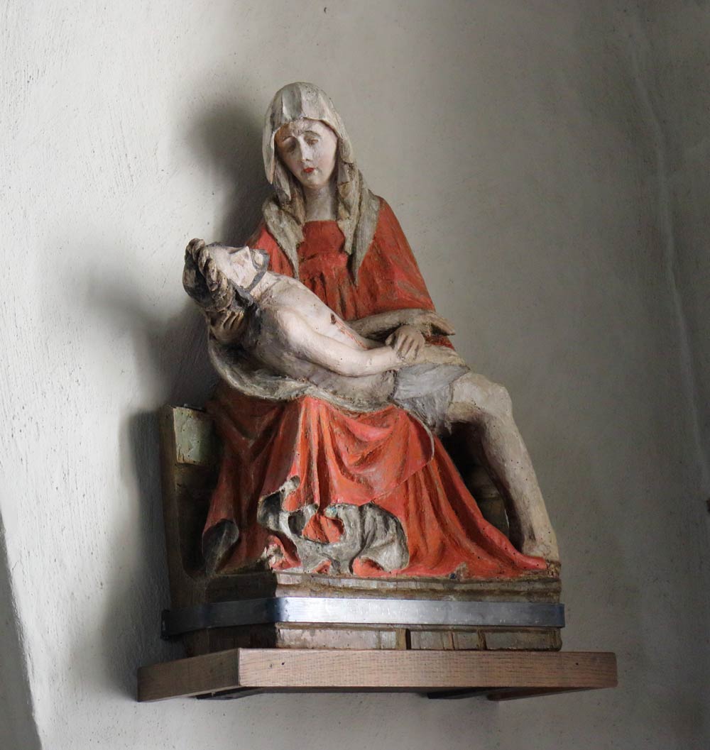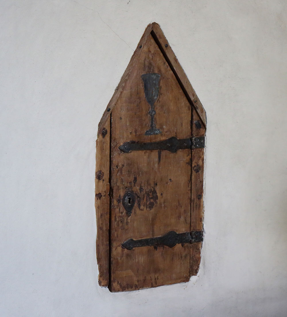 I absidens mur finns ett skåp med en trälucka. Här förvarade man brödet och vinet till nattvarden. Dopfunten är i gotländsk sandsten från omkring 1175. Invid absiden hänger en pietà; en träskulptur som föreställer den sörjande modern Maria med den döde Jesus i sin famn. Den tillverkades i Nordtyskland i början av 1400-talet.