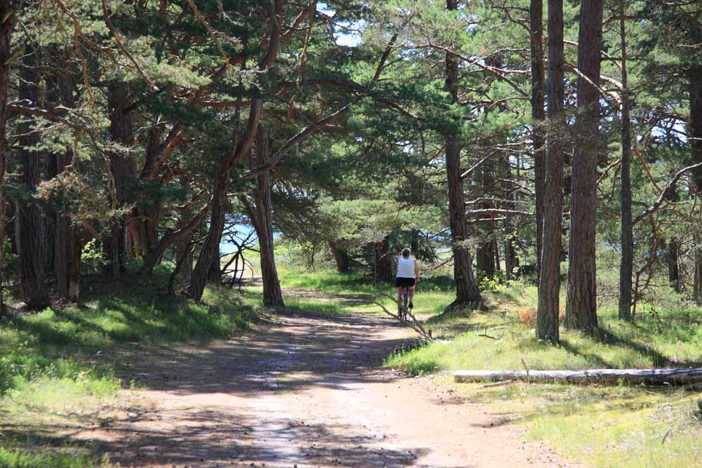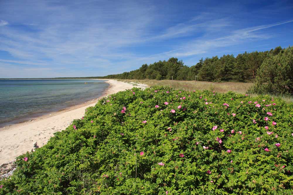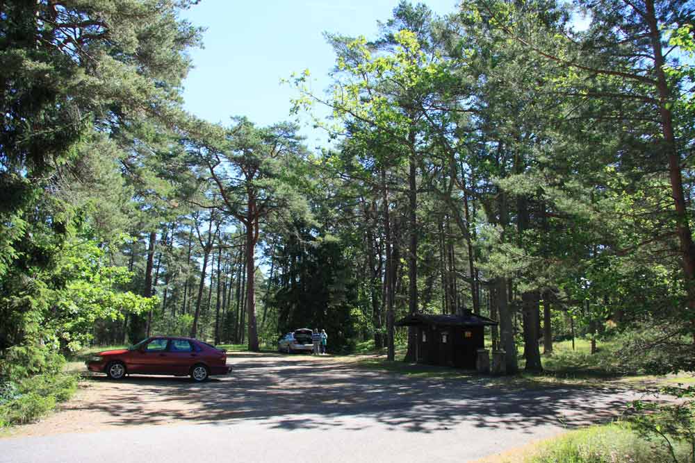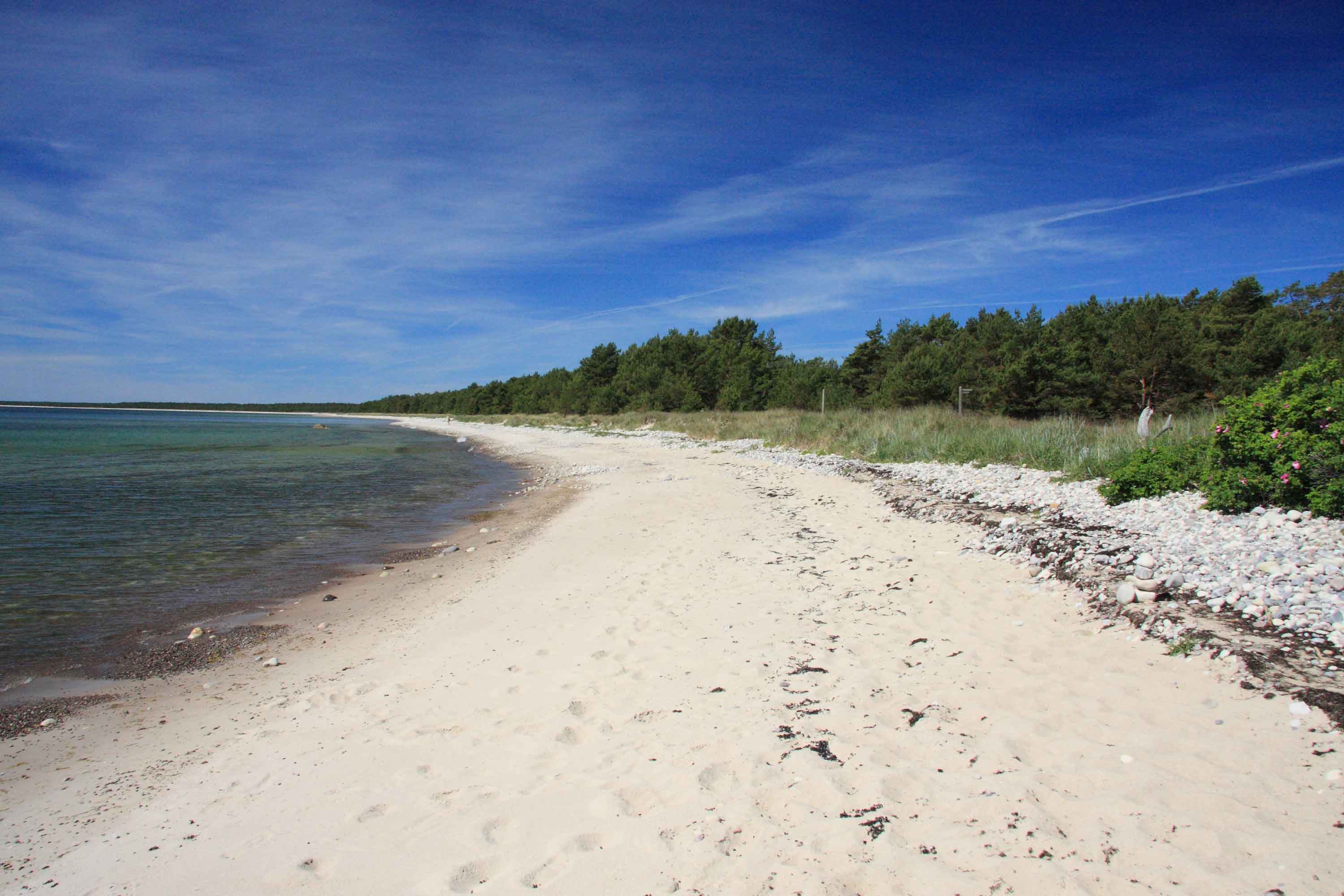 Badplats i Bödabukten. Sand. Torrtoalett.