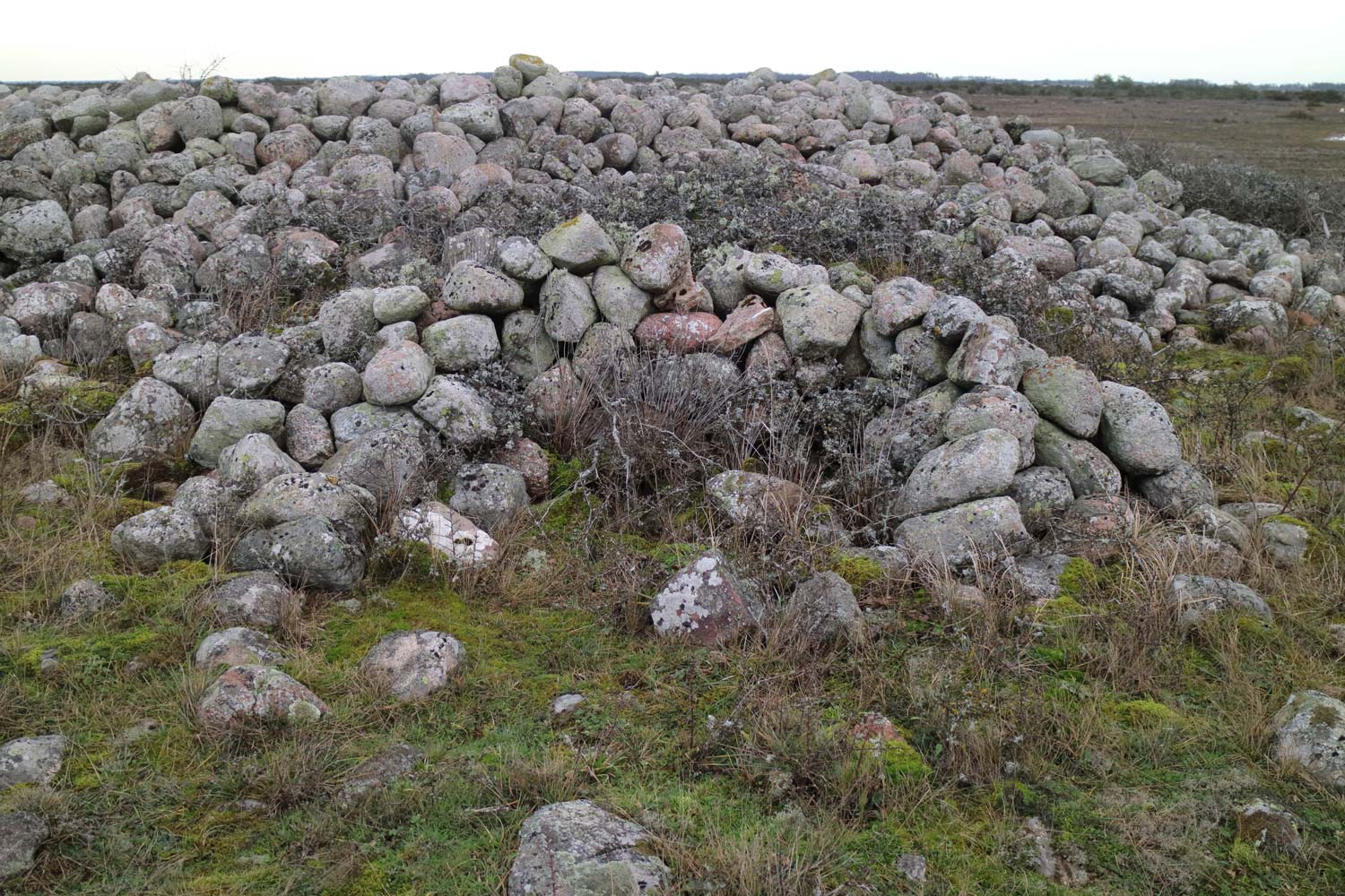 Fårvaktarkojor i röse på Södra Kvinneby alvar
