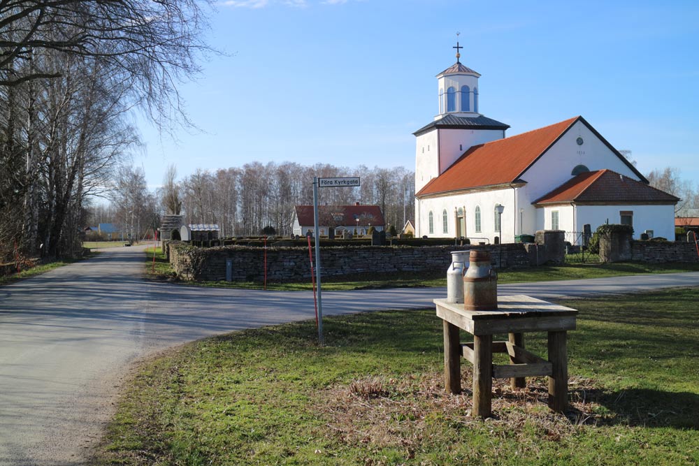 Strax intill kyrkan finns den före detta småskolan från 1880-talet liksom folkskolan från 1920-talet.