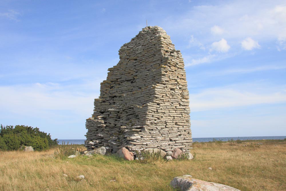 Strax norr om bodarna, i de betade sjömarkerna, står ett sjömärke av kalksten, sju meter högt, med smalare, rundad överdel. Det till storleken imponerande byggnadsverket uppfördes 1868 och kallas av lokalbefolkningen för "Hallnäskärringen".