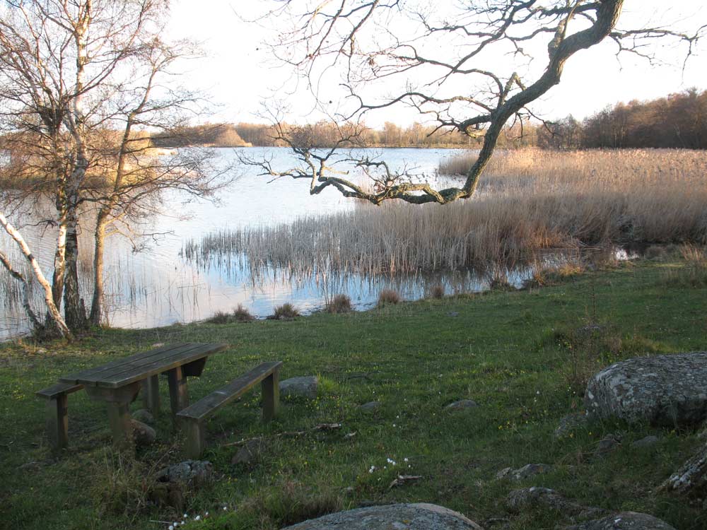Hornsjön kan besökas från flera håll. Förslagsvis går man från någon av parkeringarna vid Horns kungsgård till Klosterholmen.