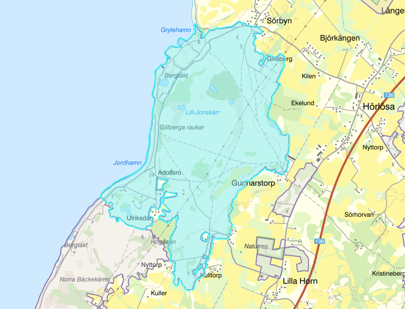 Klintkust med stora natur- och skönhetsvärden. Öppet alvarområde med flera sällsynta växter och svampar. Vid Gillberga ligger raukar i ordovi- cisk kalksten. I Jordhamn finns en serie av strandvallar.