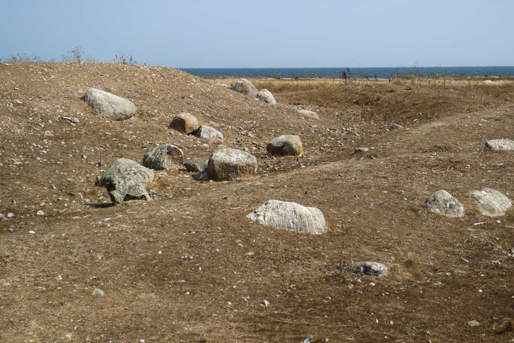 Öster om denna ligger en cirkelformad vall av sten, nedrasad och ungefär 0,75 meter hög idag. Cirkeln har en diameter på 30 meter och innanför den finns det en ytterligare en låg cirkelformad vall. I mitten av anläggningen finns en 7x7 meter stor grund. Sommaren 2018 syntes grunderna tydligt på grund av torkan.