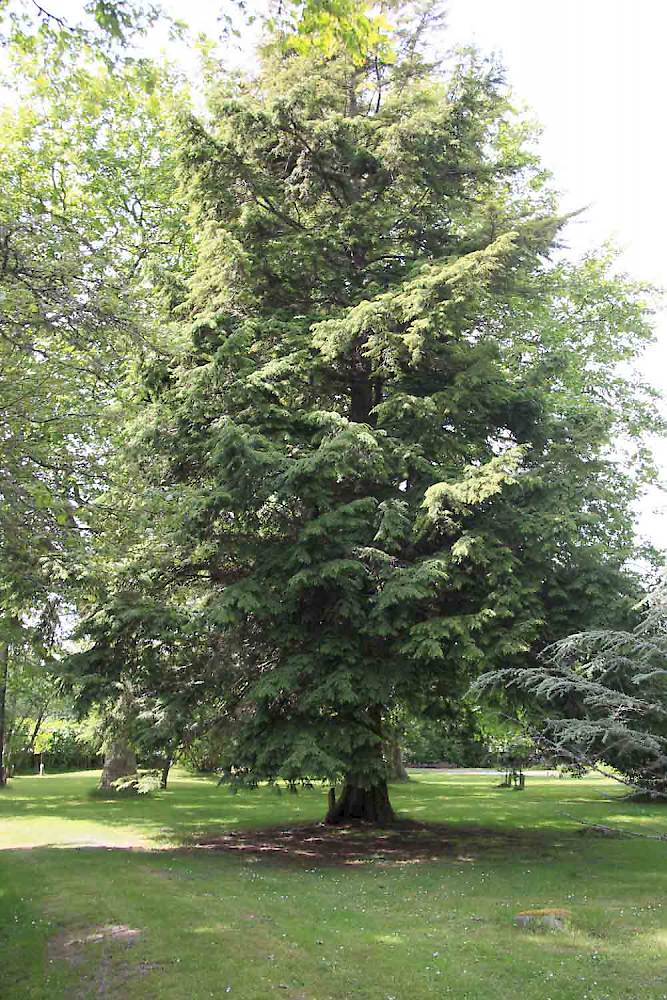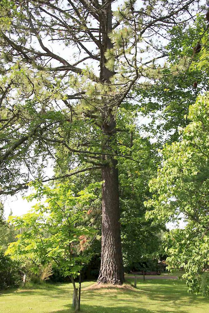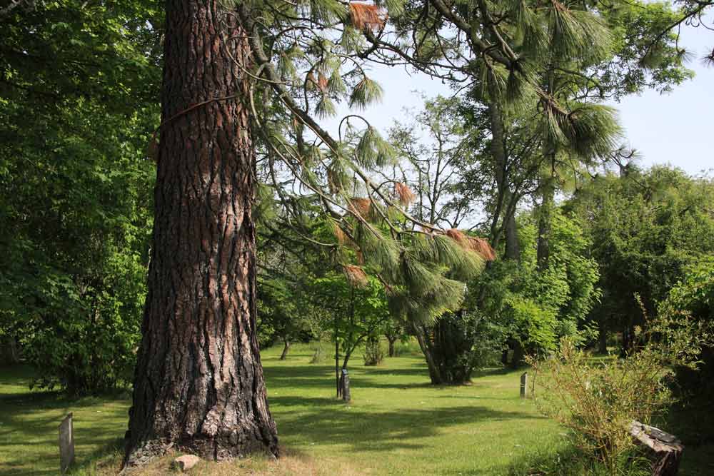 Jeffreytall(Pinus Jeffrey). Härstammar från Nordamerika. Den har mycket stora kottar. Träden planterades 1890.