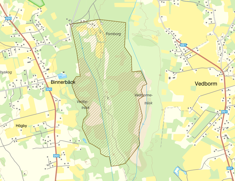 Fornborg och medeltida försvarsverk som ligger i anslutning till ett äldre sötvattenområde. Vedby fornborg är Ölands nordligaste och tillhör en av de större med sin ovala planform som mäter 165 x 110 meter. Den ligger på näset mellan två mossar, Vedby- och Vedbormeträsk, som är två utdikade sjöar. Två ingångar finns till borgrummet varav den södra är den äldsta.