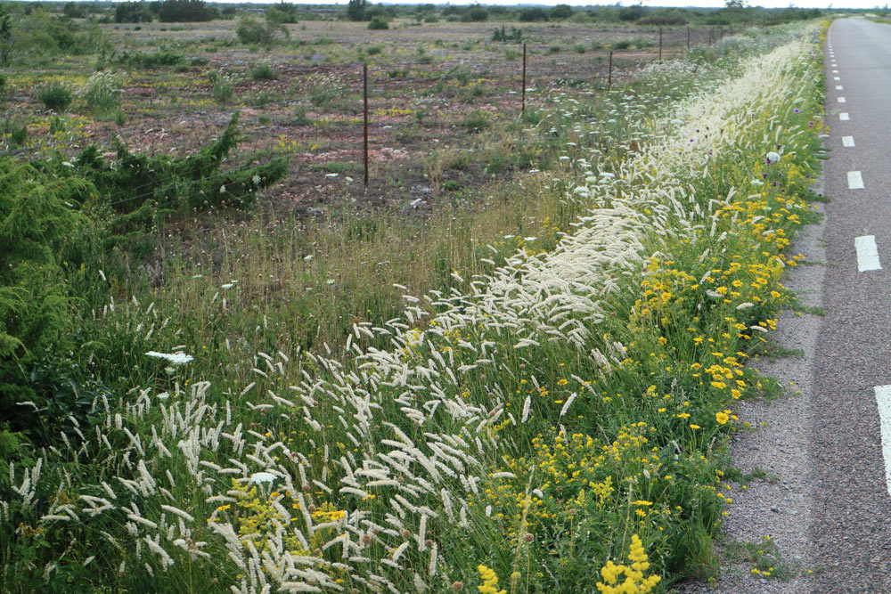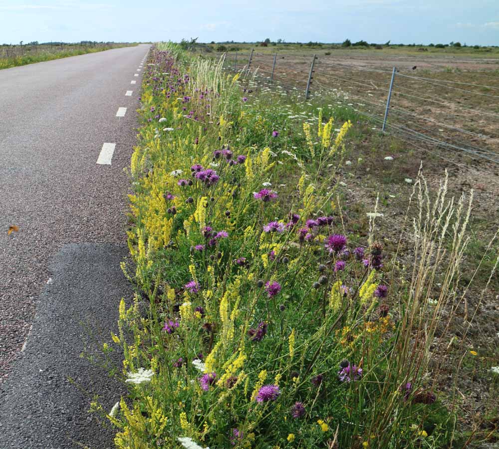 Där Ölands vägkanter klipps på ett genomtänkt sätt erbjuder de i mitten av sommaren en blomsterprakt som på få andra ställen. Det sprakar av vitt, gult, blått och rödlila; ibland bara blått och gult eller vitt och blått; ibland alla färger på en gång. Särskilt på södra Öland kan man se dessa vägkanter. Vägarna över Stora alvaret, som mellan Resmo och Stora Brunneby samt mellan Bårby och Alby, är bland de mest praktfulla. Ett lämpligt stopp är vid Möckelmossens infoplats.