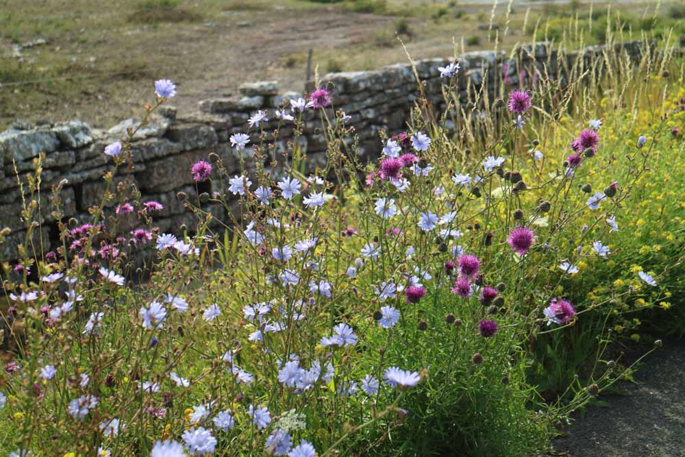 Bland de blåa blommorna är det cikoria som dominerar och på vissa platser blåeld; cikorian med den lite ljusare blå färgen än blåelden. Den senare håller på att breda ut sig, men annars har alltid Neptuni åkrar varit ett säkert ställe att se den.