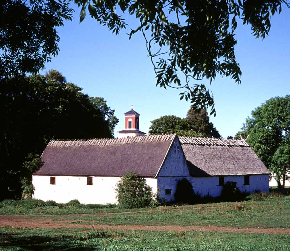 Sockencentrum med 1800-talskyrka och marknadsplats med bevarade ålderdomliga marknadsbodar