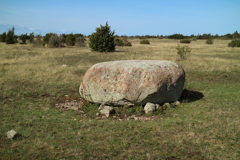 Ett flyttblock med 120 älvkvarnar även kallade skålgropar. Groparna har knackats fram i stenen under stenålder-bronsålder. Den vanligaste tolkningen av groparnas funktion är att de spelat en viktig roll inom fruktbarhetskultens olika yttringar för god skörd. En hypotes är att man rituellt malde sädeskorn i dem, eftersom de flesta ligger i anslutning till forntida åkrar.