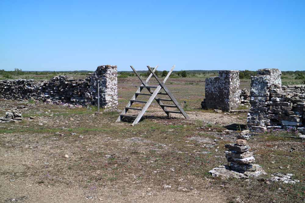 Innan du kommer till fyrledskorsningen passeras en grav från brons- eller järnålder (stensättning 8 m i diameter). Ett stycke in på den nedre slingan där den svänger österut kommer man till en svinrygg. Det är en förhöjning i kalkstenen som har uppkommit genom att lättare material under kalkstenen har tryckt upp denna så att den spruckit och höjt sig över omgivande mark.