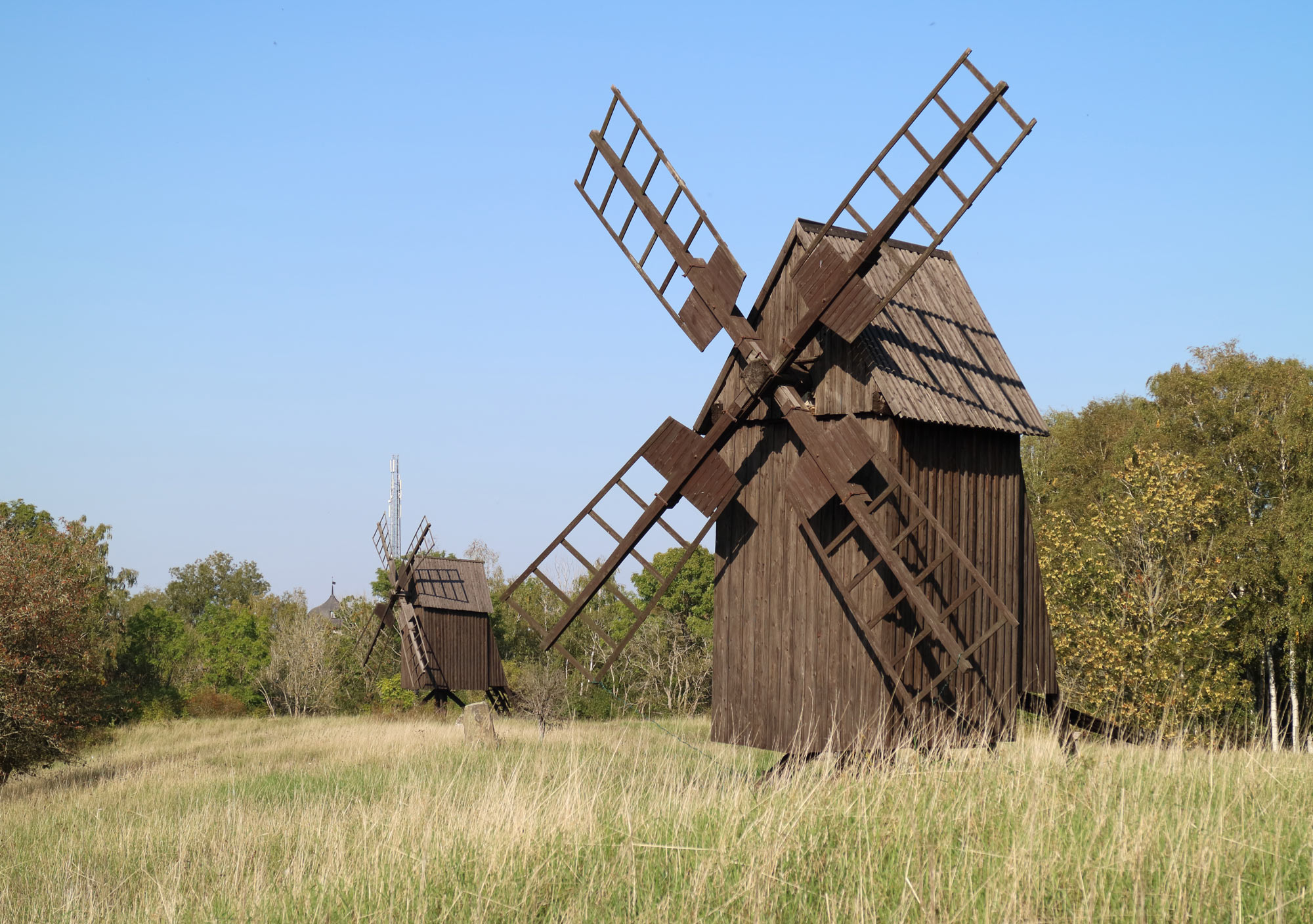 Väderkvarnarna ligger på den s k Krönvallen (*). Den norra kvarnen byggdes någon gång före år 1790 och ett antal ägare finns dokumenterade. Den södra kvarnen är sannolikt till största delen från 1780-talet men brostockarna är från 1790-talet. Årtalet 1800 finns inristat i kvarnen. I maj 1956 skänkte kommunen de båda kvarnarna till hembygdsföreningen. Sommaren 2014 renoverades och målades båda kvarnarna.
