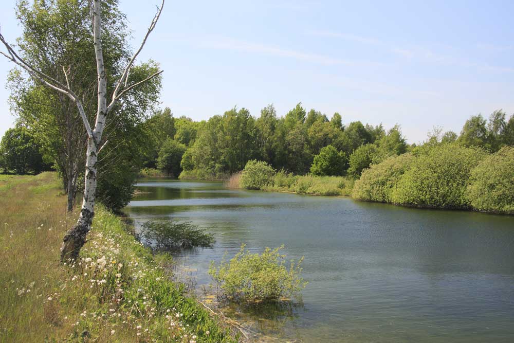 I den här bevattningsdammen häckar gråhakedopping, sothöna och änder. Alldeles intill ligger naturreservatet Styrmanshagen-Skogsby lund.