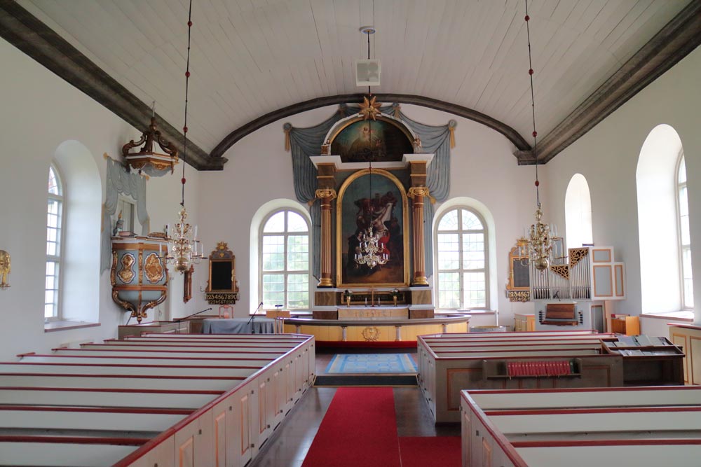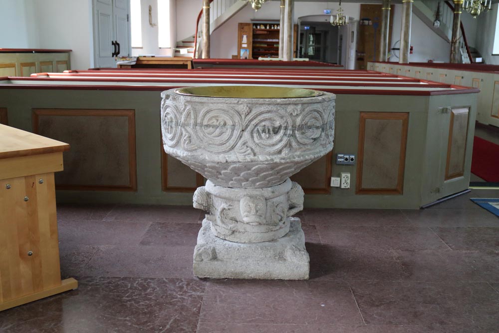 Kyrkan har en dopfunt i gotländsk grå kalksten från omkring 1230 och ett kyrskepp.