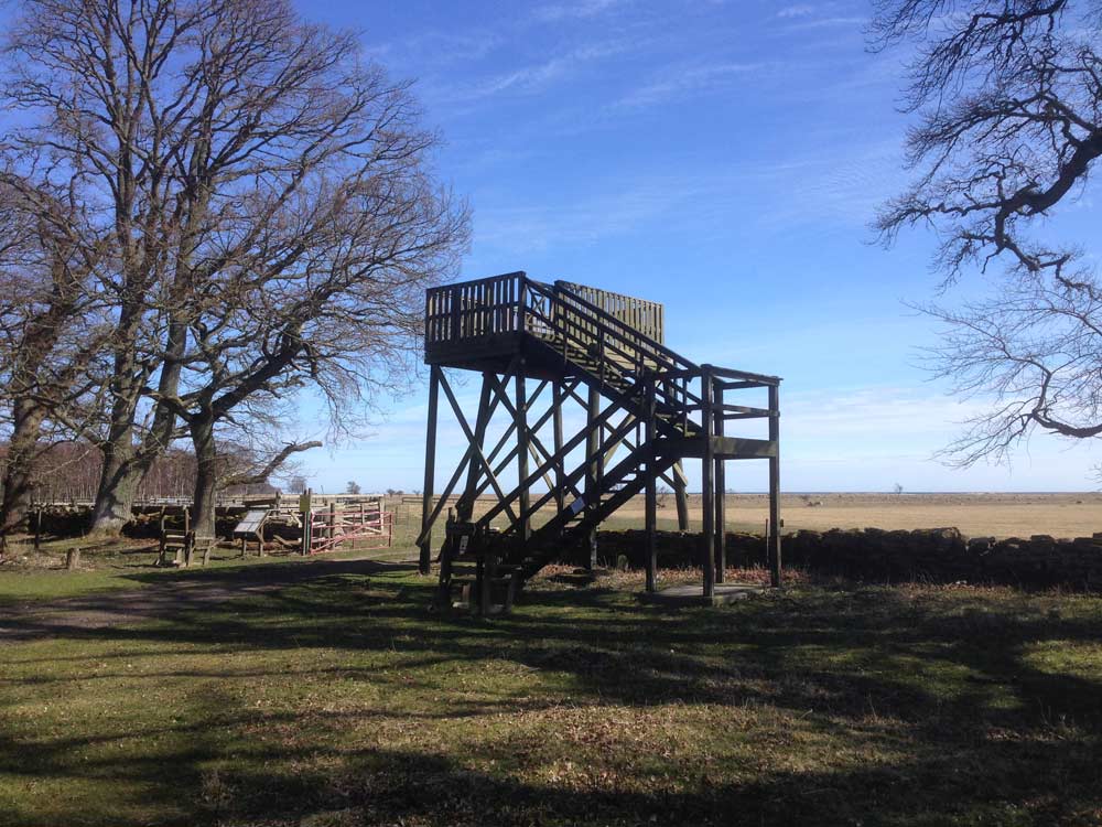 Fågeltorn i norra Ottenby lund. Du når det från norra lundparkeringen genom att gå rakt österut. Tornet ligger i kanten av lunden med utsikt över Schäferiängarna.