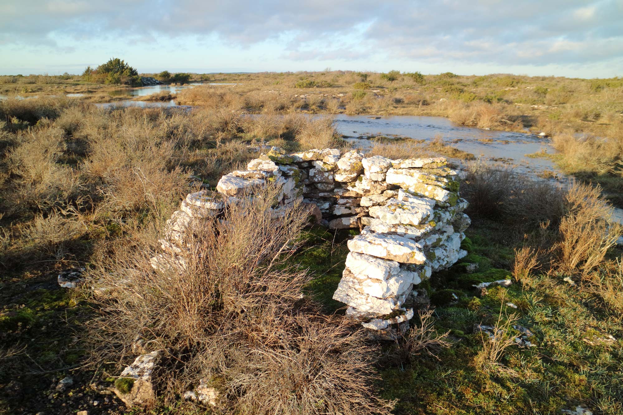 Vid vattendraget från Dröstorpsmossen till Forsfallsdammen ligger denna fårvaktarkoja. Den är ett minne från Stora alvarets herdekultur, när särskilt utsedda herdar vallade byarnas gemensamma boskap, främst får, på Stora alvaret. De behövde då ett väderskydd och byggde dessa enkla kojor utan tak på lämpliga platser.