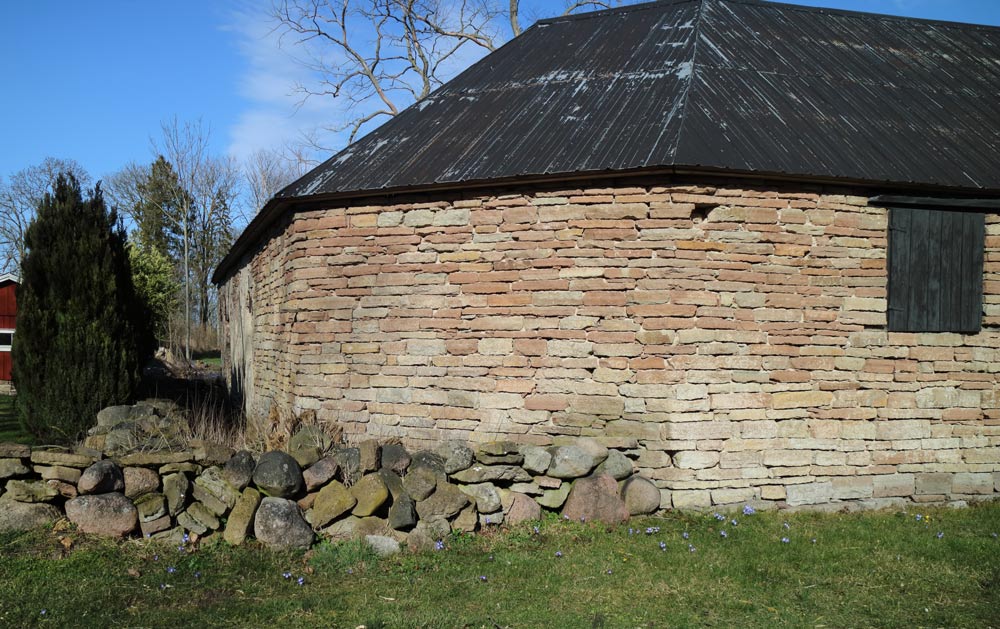 Byns bebyggelse är välbevarad. Här finns sammanbyggda ladugårdslängor med dösade hörn uppförda både i skiftesverk och kalksten.