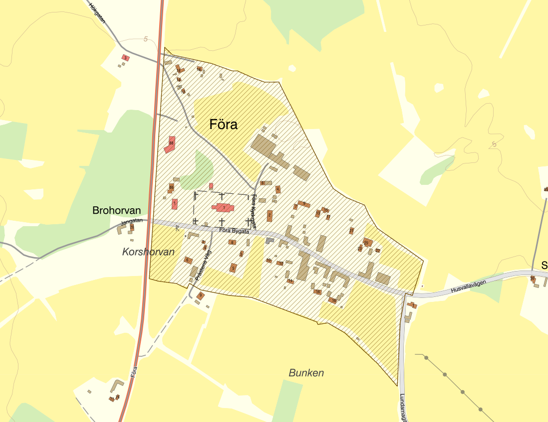 Föra socken utgjorde tidigare ett eget härad, Förbo härad, som upplöstets på 1690-talet. Byn, som 1540 omfattade sex skattegårdar och en frälsegård, är exempel på en dubbel radby där gårdarna ligger på ömse sidor om bygatan. Den nuvarande bytomten har troligen legat här sedan 1300-talet, men namn som Byåkersdelden och Byängarna ger en fingervisning om att byn tidigare har haft ett annat läge.