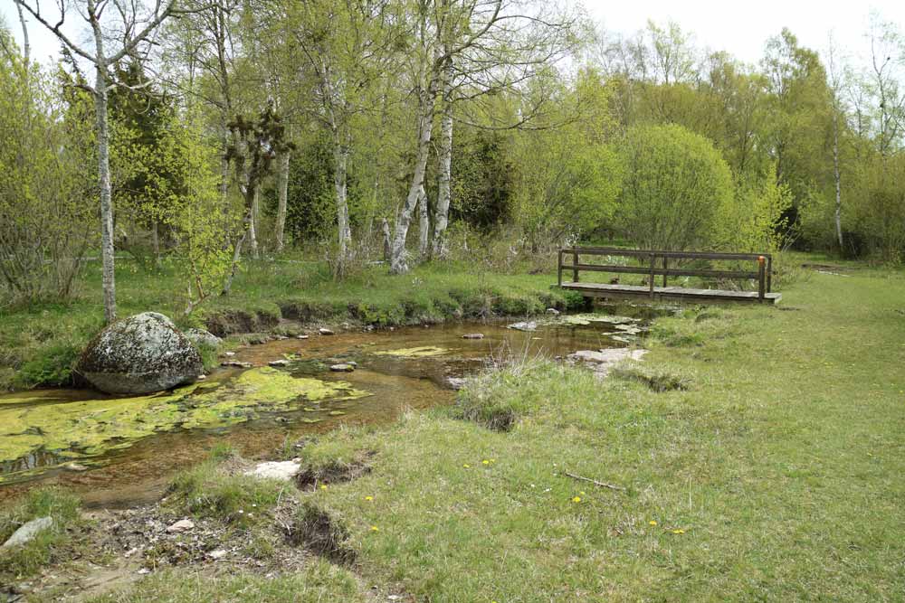 Bäcken är en viktig lekplats för havsöring och gädda. Vattnet kommer från Möckelmossen på Stora Alvaret. Längs bäckens nedre delar breder stora bestånd av ölandstok ut sig. Token trivs nämligen med att stå i vattnet, liksom björkdungarna, som också har vuxit upp kring vattendraget. Närmare stranden delar sig bäcken i ett flackt deltalandskap där fuktiga partier avlöses av torra, blomsterrika strandängar. Här växer bland annat solvända och axveronika.