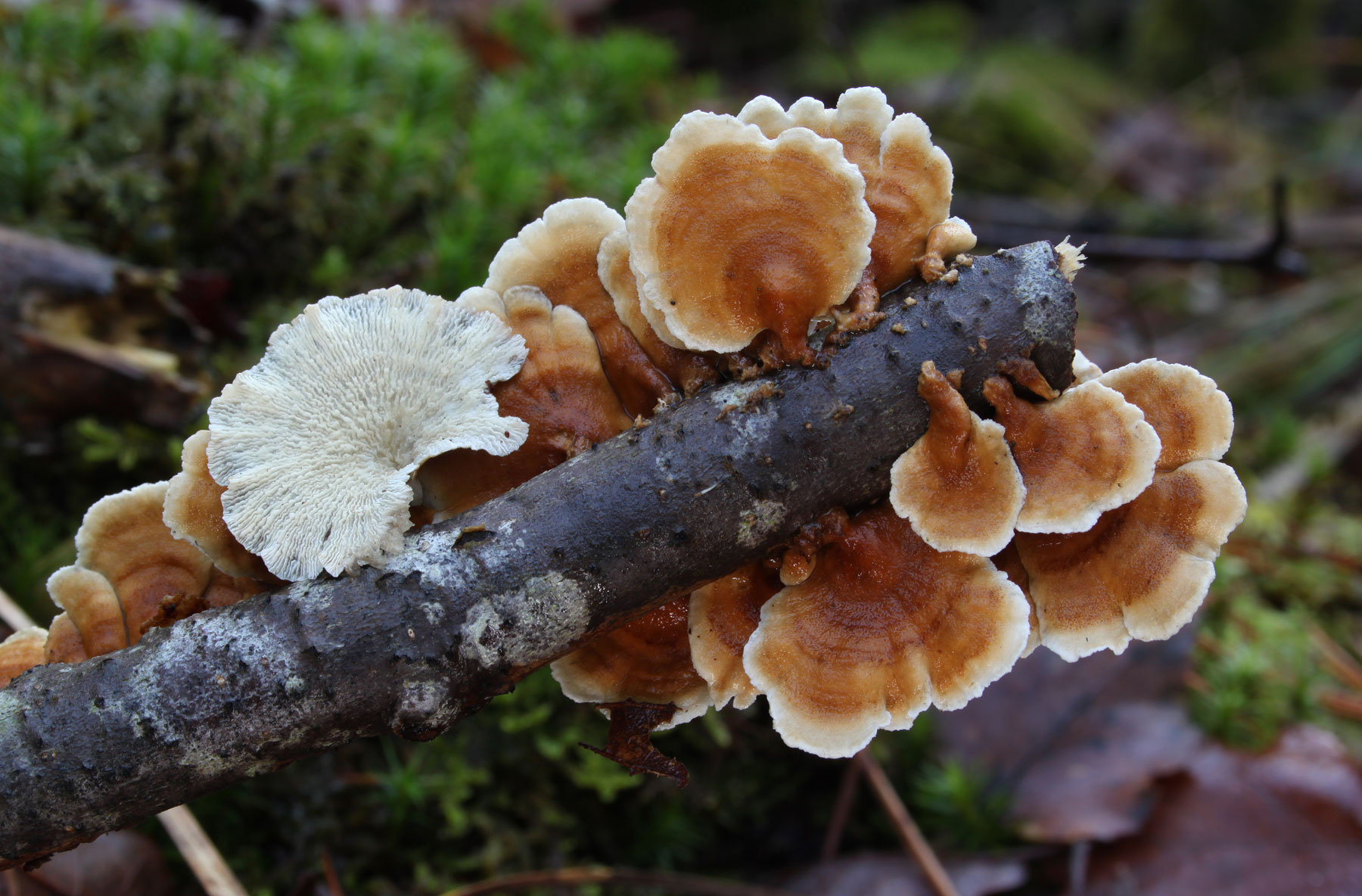 Signalarter: Vätteros, tandrot, sårläka, kantarellmussling Plicaturopsis crispa och hasselticka Dichomitus campestris.