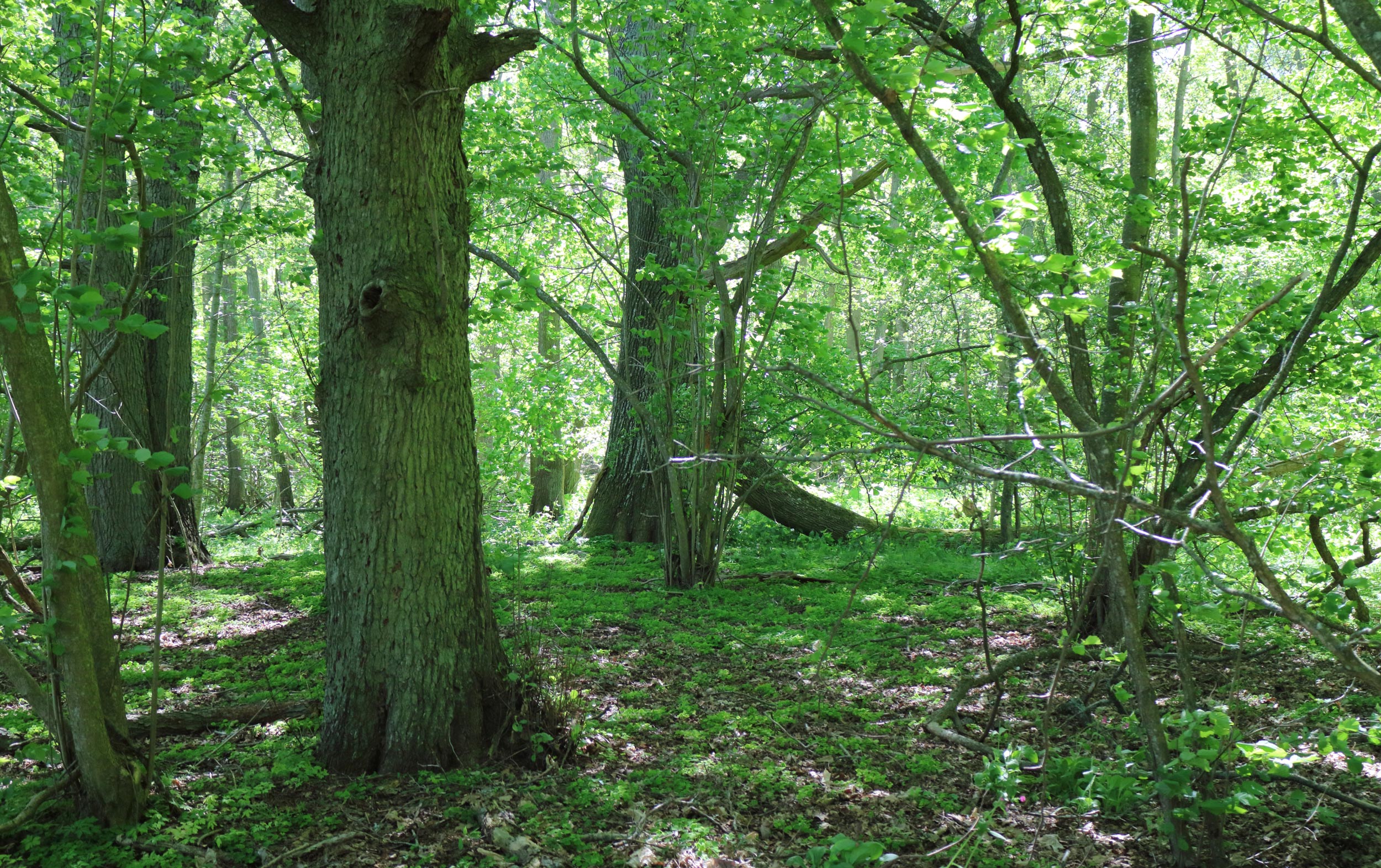 I den lundartade skogen finns rikligt med gamla, vidkroniga ekar. I lite fuktigare delar är alen det dominerande trädslaget, men även en del björk förekommer. Hasseln bildar överallt ett skuggigt buskskikt.