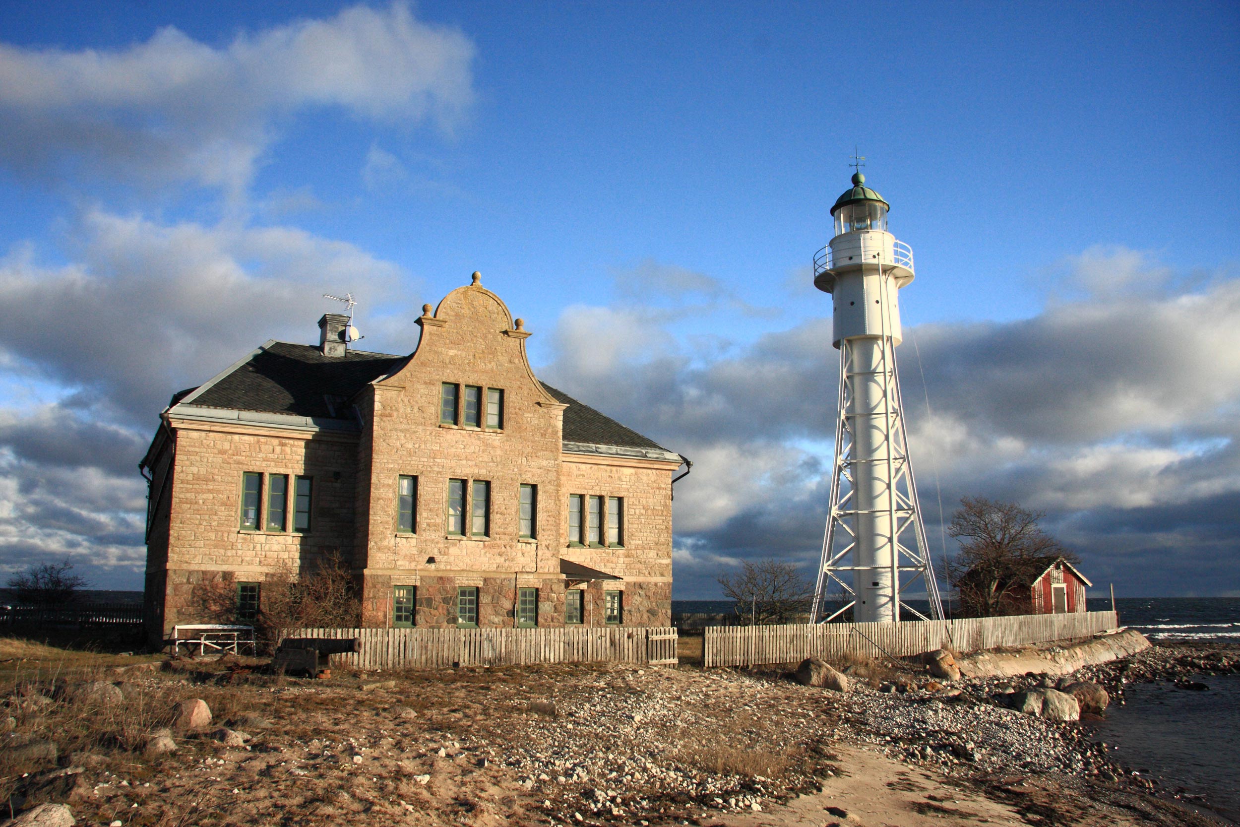 Fyrvaktarbostaden uppfördes 1898 med två, idag ihopslagna, lägenheter, en för fyrmästaren och en för fyrvaktaren. Bostaden består av en tvåvånings tegelbyggnad under skiffertäckt, valmat tak. I källarvåningen fanns lagerutrymmen för mat och redskap samt fotogen för fyrens drift. Huset är i nedre plan täckt med huggen granit från Blå Jungfrun och för övrigt med huggen kalksten. Fyren och fyrvaktarbostaden i privat område.