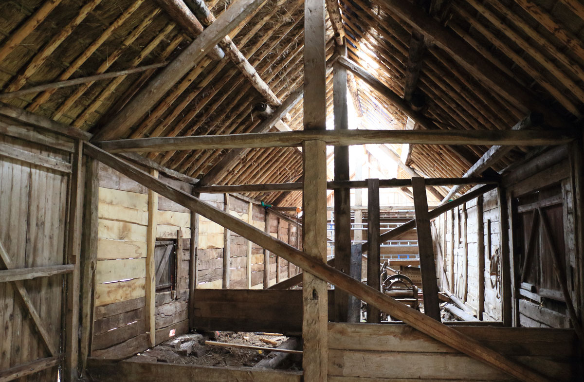 I högsuleladorna finns en ålderdomlig takkonstruktion som kännetecknas av en mittås buren av lodräta stolpar i byggnadens mittlinje.