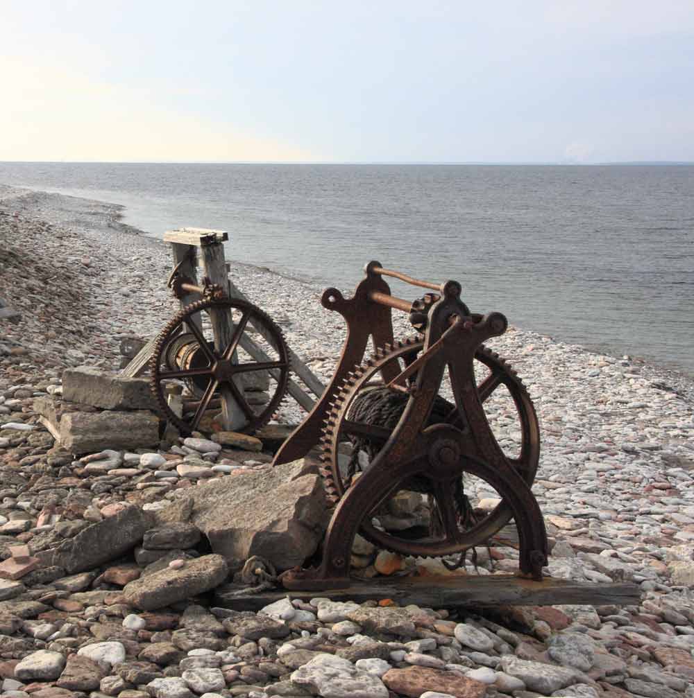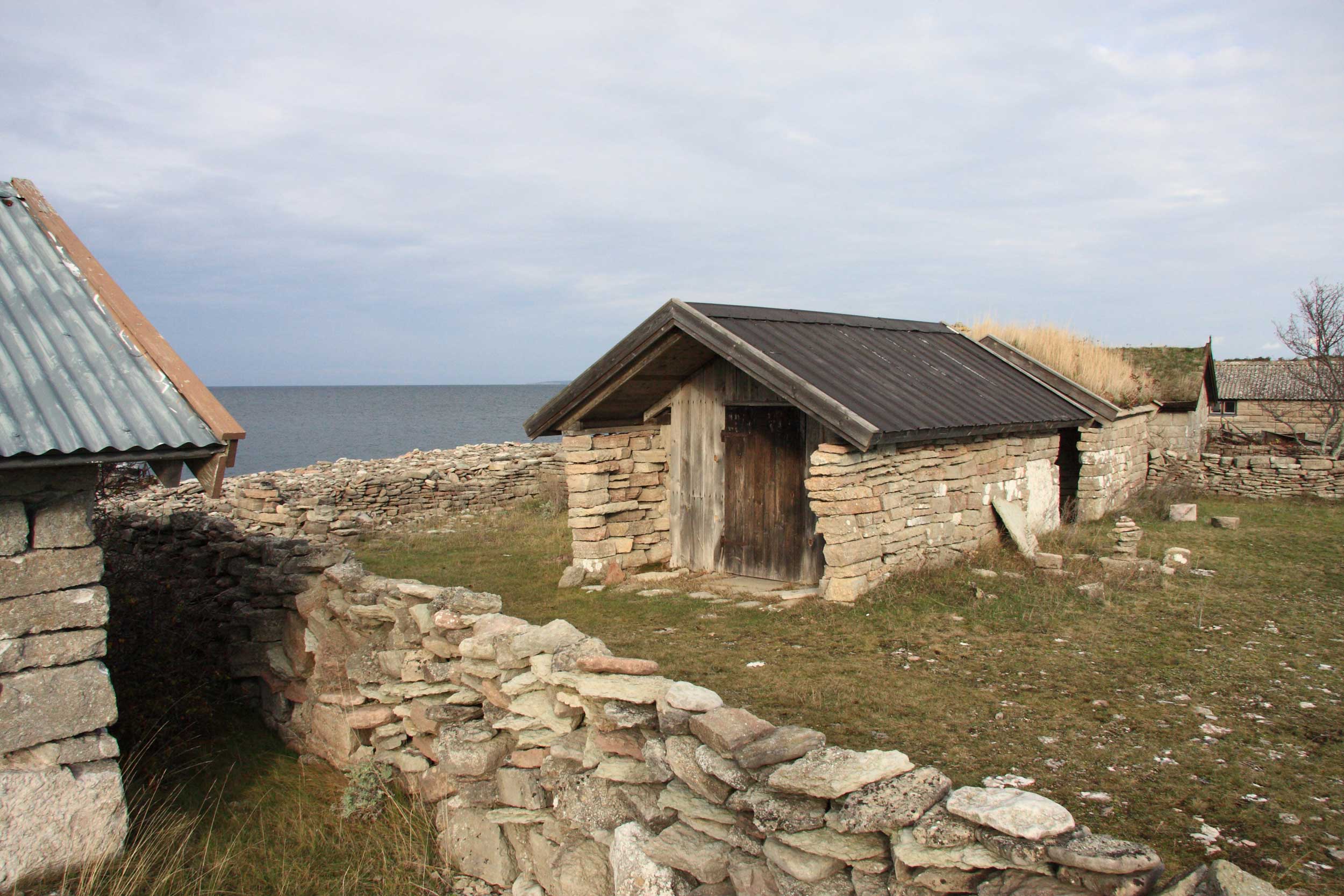 I en naturlig vik utefter Stenkusten finns här äldre sjöbodar i sten samt en skurkvarn.