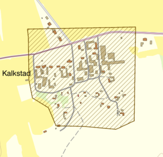 Kalkstad är en radby i laga läge med delvis välbevarad ålderdomlig bebyggelse och har en stor malm med flera välbevarade stugor och söder om byn i alvarkanten. Kalkstad omfattade 1540 sju gårdar; sex skattegårdar och en frälsegård som ägdes av Gustav Vasa. Byn är en vinklad radby. Mellan de två husgrupperingarna ligger en öppen byallmänning som kommit att bilda ett "bytorg".