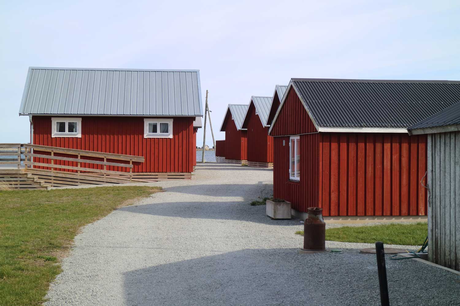 Man når hamnen via en smal stenmurskantad väg. På ömse sidor av vägen finns en småskalig trähusbebyggelse som i första hand är uppförd kring sekelskiftet, då bebodd av framför allt fiskare och hantverkare. Byggnader och de stenmursomgärdade små tomterna är i allmänhet välhållna och dominerar miljön, även om det tillkommit enstaka modernare villor. Nere vid hamnen finns två koncentrationer av fiskebodar, en äldre och en nyare. De förra är uppförda i trä och kalksten och tillhör Vi.