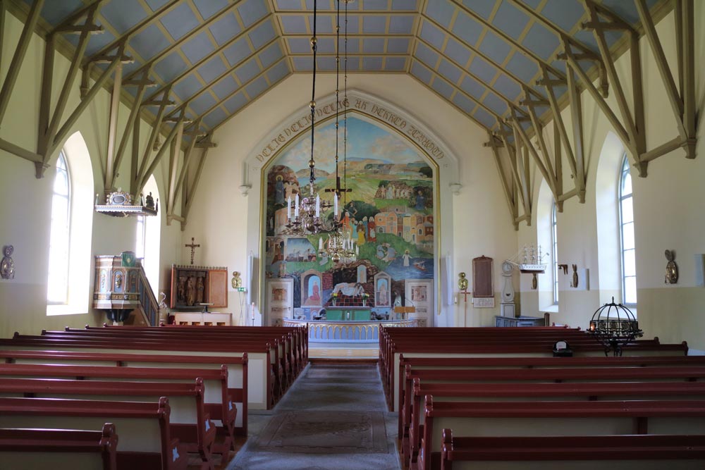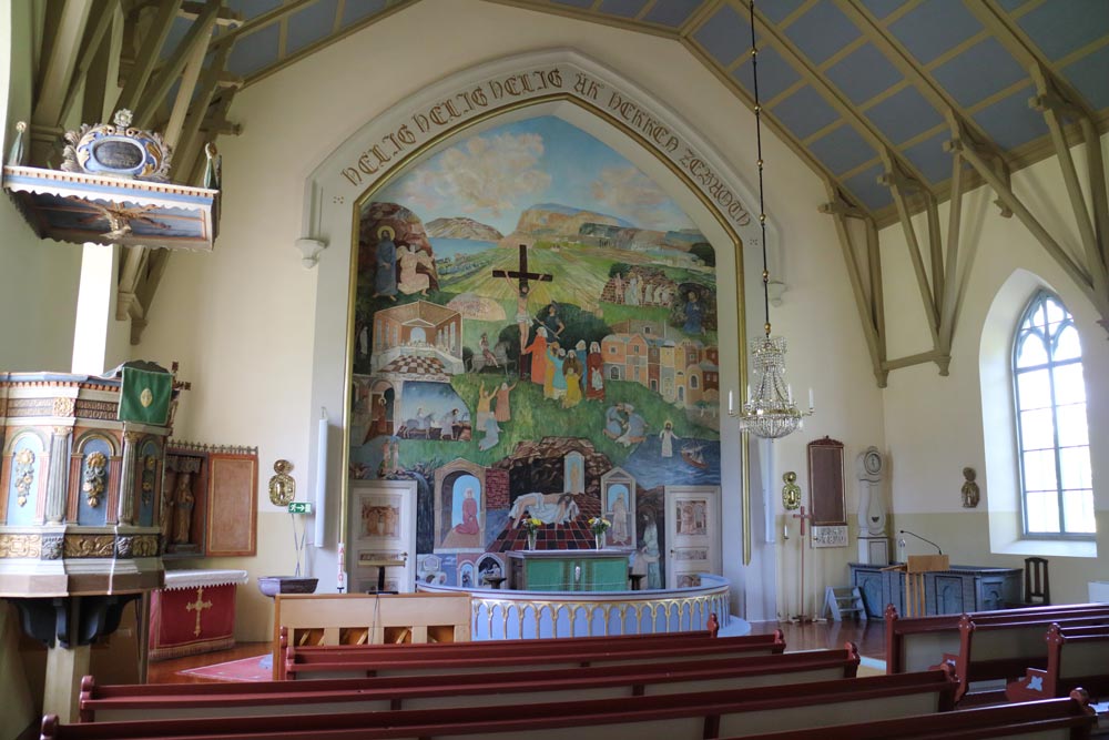 Altarmålningen är gjord av konstnären Lars Wellton 1975.