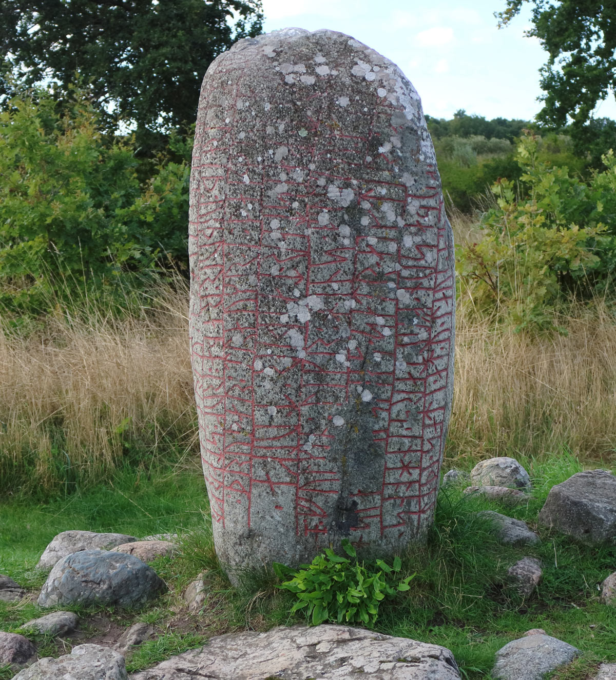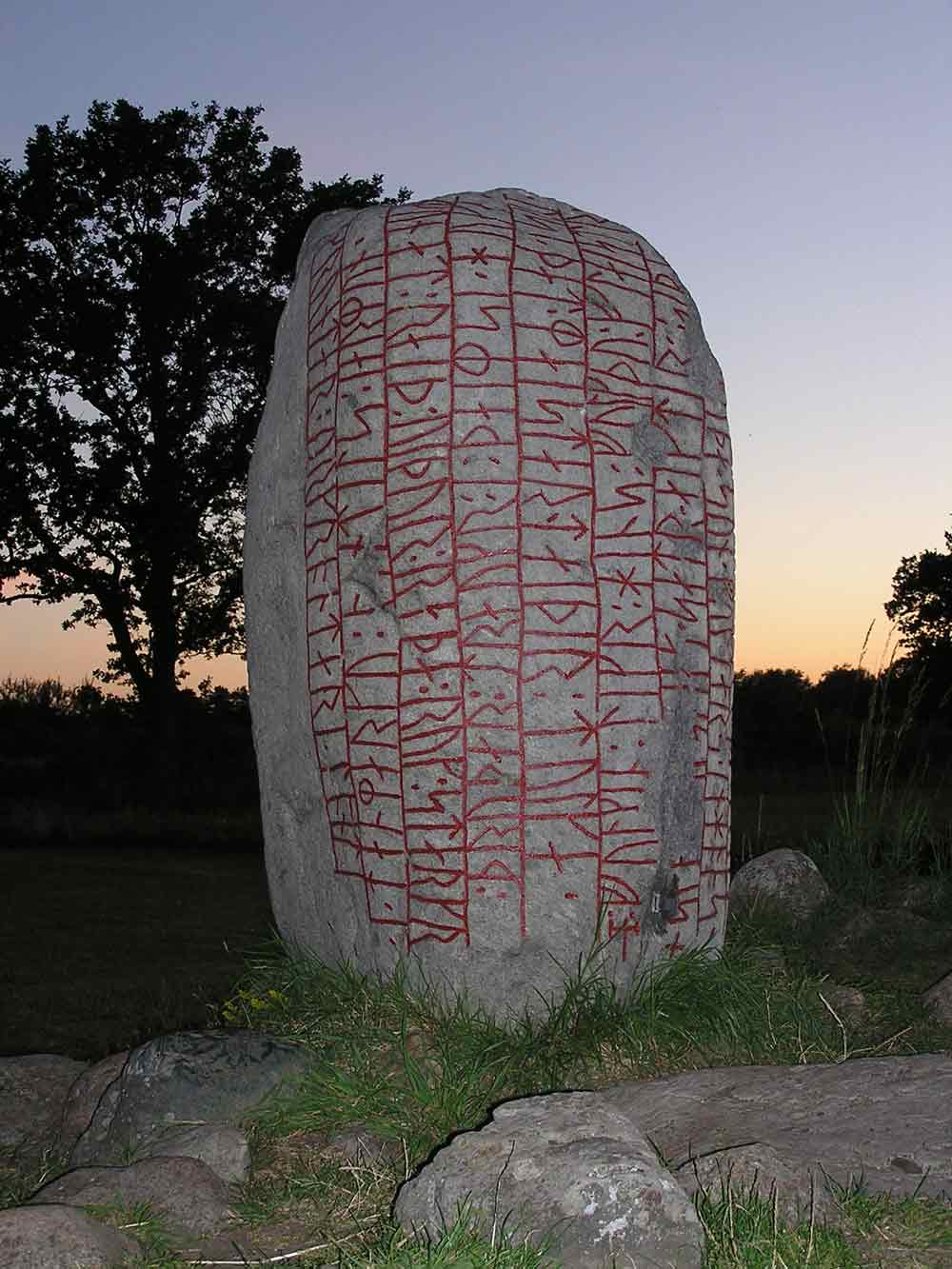 "Dold ligger den som de största dåd följde - det visste de flesta - ´stridernas Truds arbetare´ i denna hög. Ej skall en rättrådigare kampstark ´vagn - Vidur´ på sjökonungens väldiga mark råda över land i Danmark."