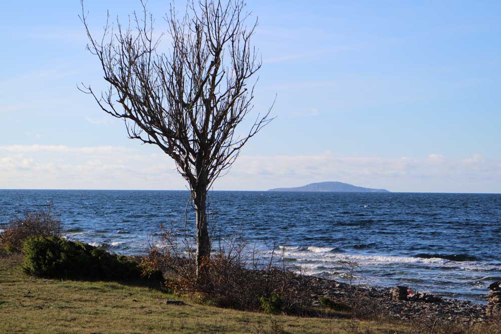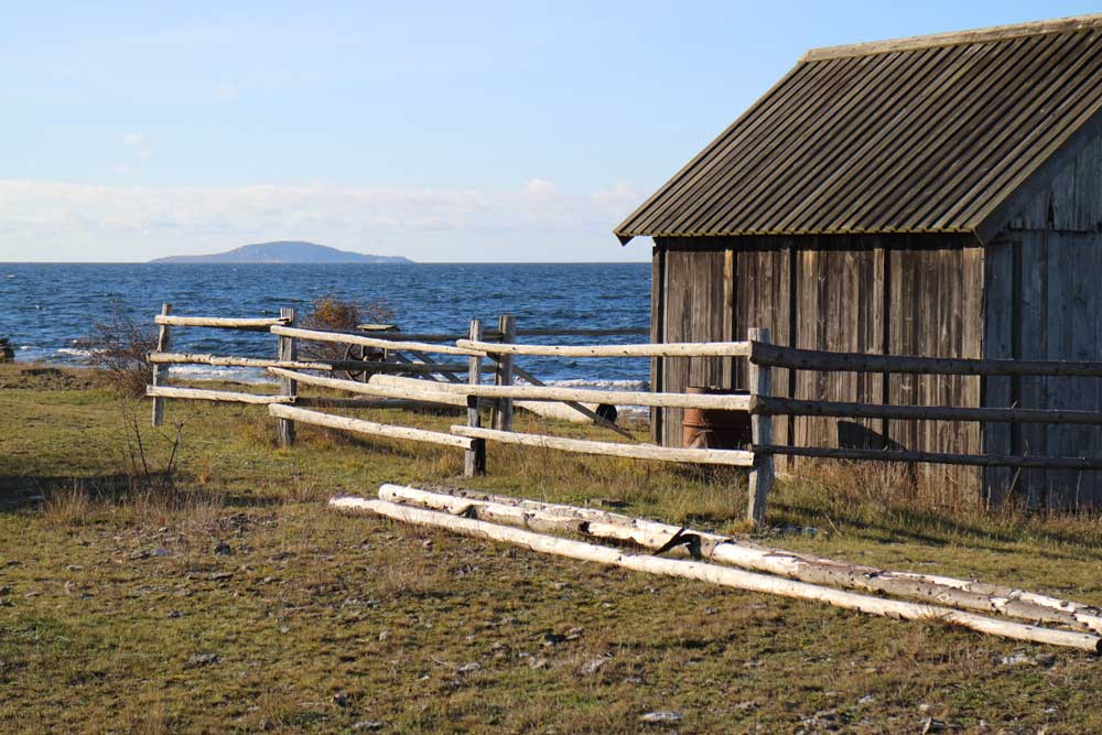 Man färdas långsamt på den lilla kustvägen mellan Byxelkrok och Hagaskog. En gammal kalkugn finns strax innanför stranden. I norr finns Café Haget och Sjöbodar vid Haget.