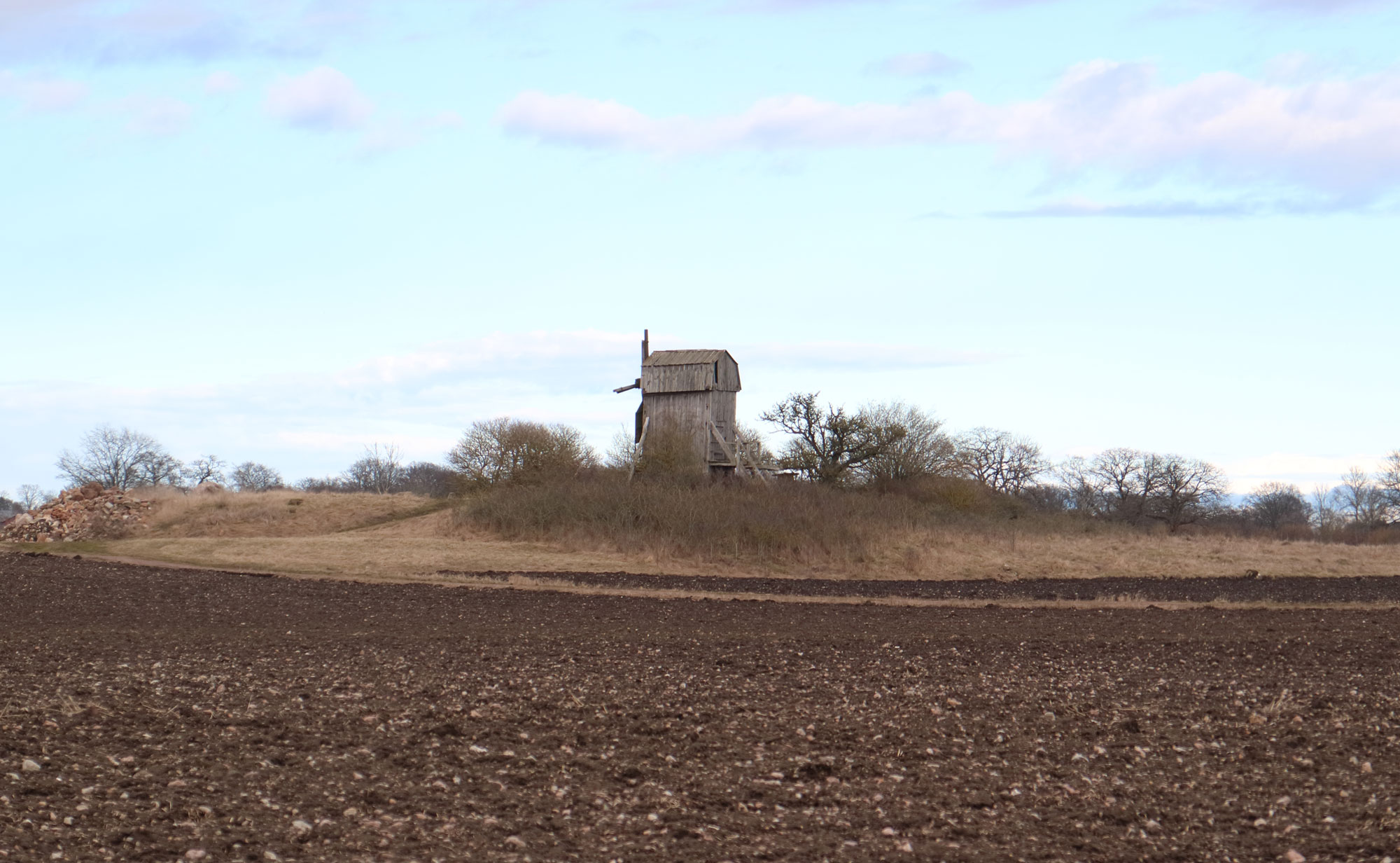 På mellersta Ölands inland finns denna kulle med en väderkvarn mitt ute i åkerlandskapet. Det har visat sig att detta är en utmärkt lokal för att se rovfåglar under sträcktid.