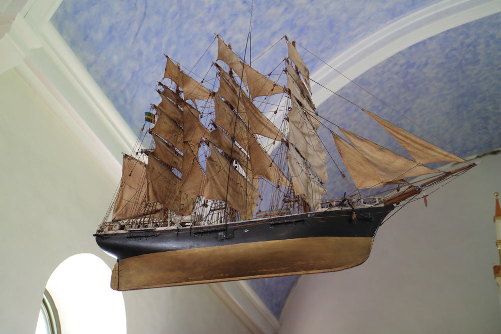Det nuvarande kyrkskeppet i Gräsgårds kyrka är en pampig fullriggare av klipper-typ med satta segel. Det skänktes till kyrkan 1954 av Oscar Johansson i Torngård, uppsyningsman vid Gräsgårds livräddningsstation, i samband med restaureringen av kyrkan detta år. Det var ett tackoffer från donatorns sida för att lyckligt ha undkommit alla faror till sjöss. Modellen ska ha köpts från en möbelhandlare i Degerhamn.