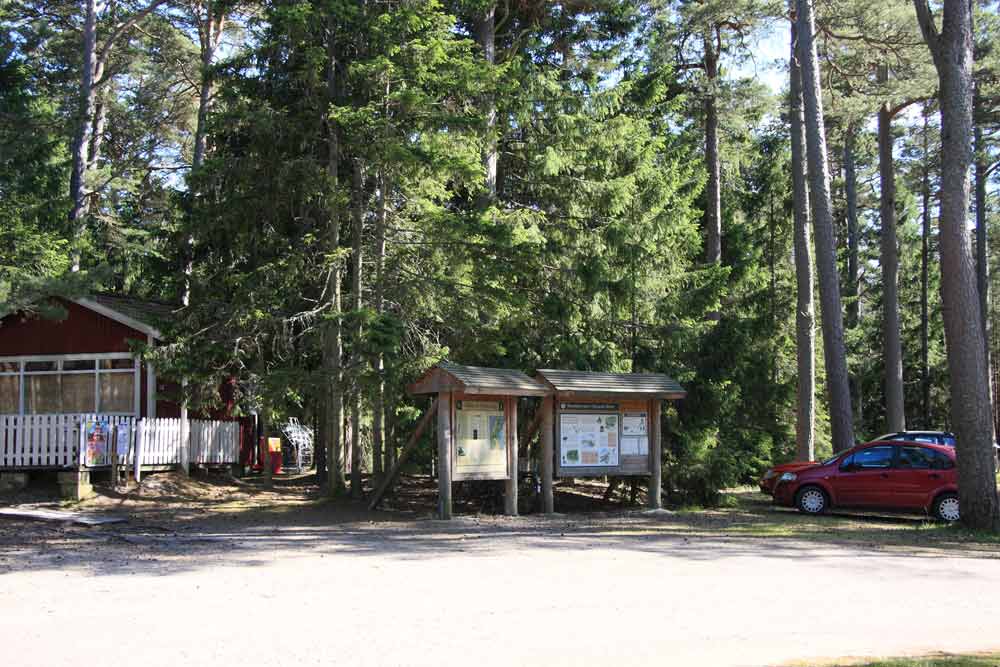 Badplats i Bödabukten. Sand. Torrtoalett.