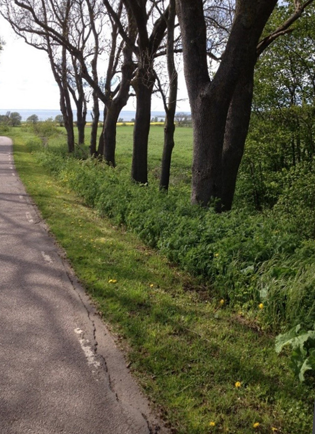 Stigen utgår från Smedby sockenstuga, Margit Fribergs gamla skola, som ligger mitt emot kyrkan. Stigen slutar vid Gåsesten. På vägen ner passerar man odlingsmark, stenlador, sjömark och andra miljöer som Margit Friberg levandegör i sina böcker. Vandringen är 2,5 km, lättgången men delvis inte framkomlig för rullstolar och barnvagnar.