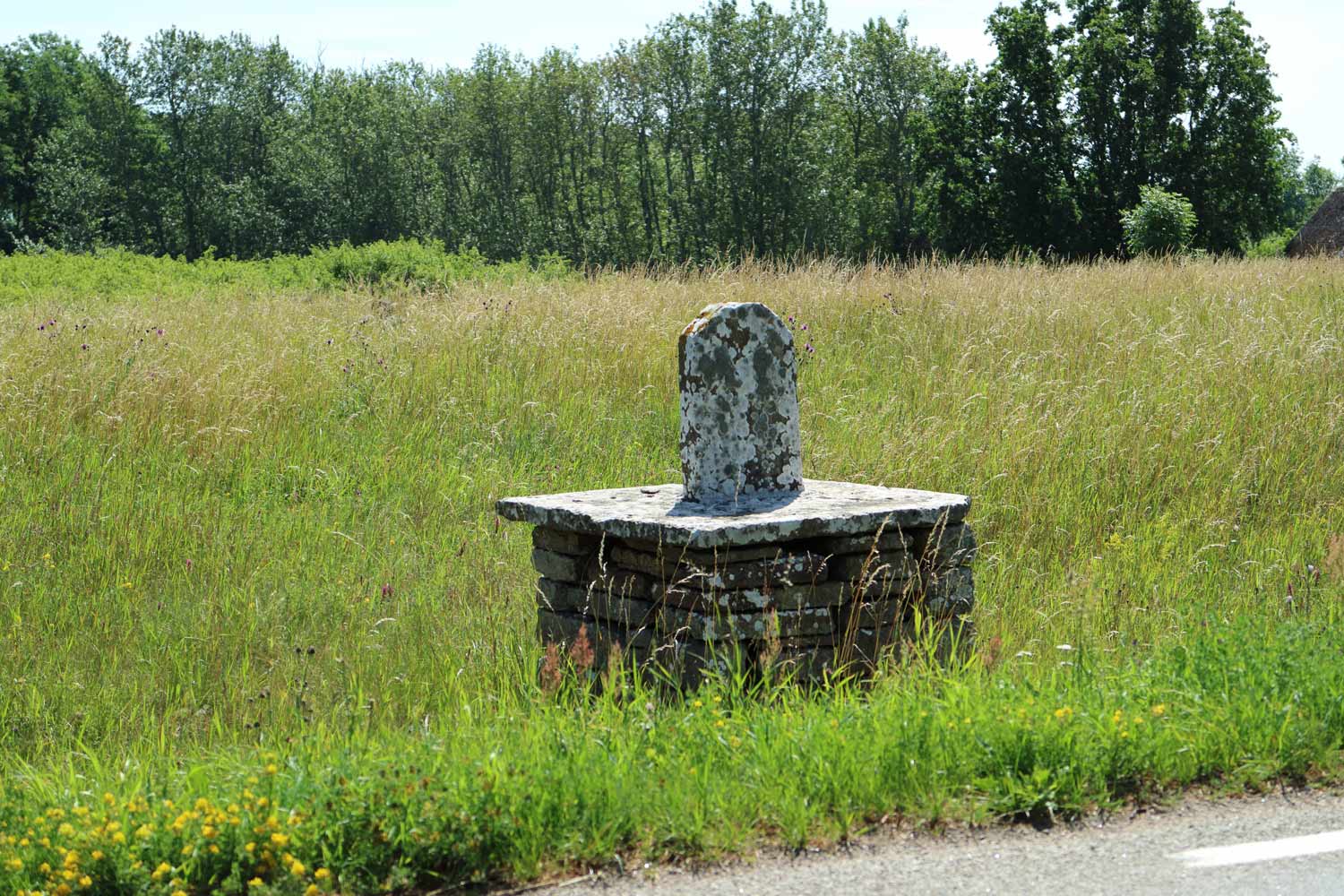 Milstenen står strax norr om Åkerby vid östra landsvägen. Text: 1/4 MIL inget år.