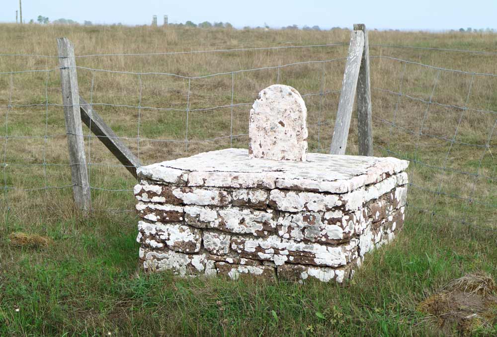 Milsten strax söder om Hulterstads malm. Den läsliga texten är: MIL