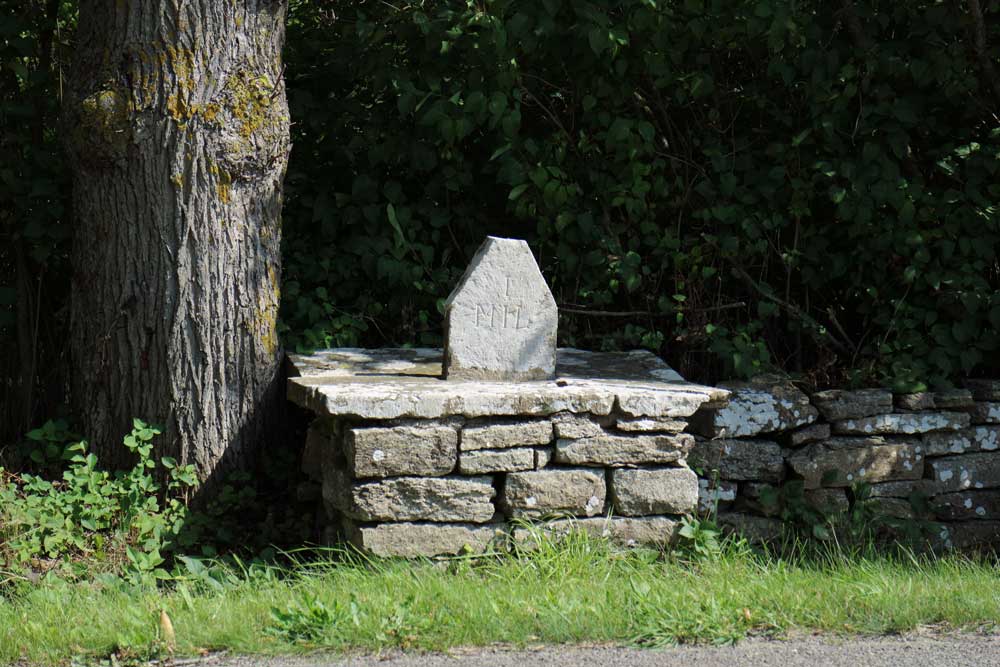 Milstenen står vid väg 136 nära nerfarten till Lilla Smedby. Text på stenen: 1 MIL