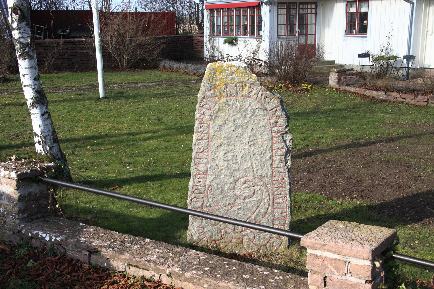 På den andra stenen söder om bron (195 cm hög, 95 cm bred kalksten) är inskriften: "Sven gjorde (detta) efter sin fader Vikar; ende sonen reste själv stenen".
