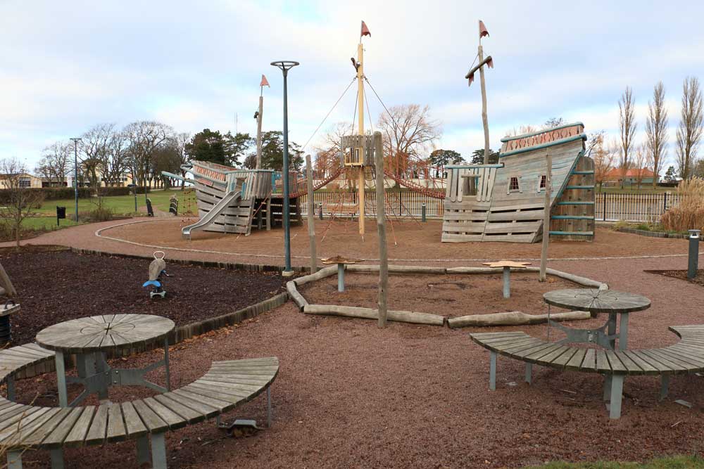 I Bäckmanska parken i Borgholm finns detta piratskepp att klättra i.