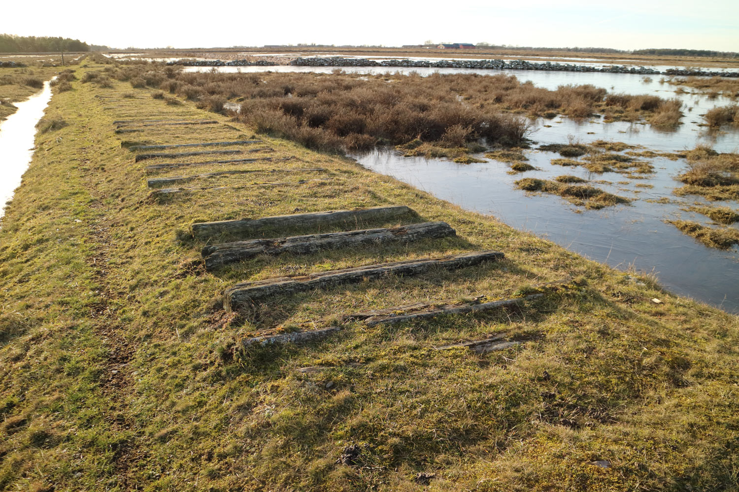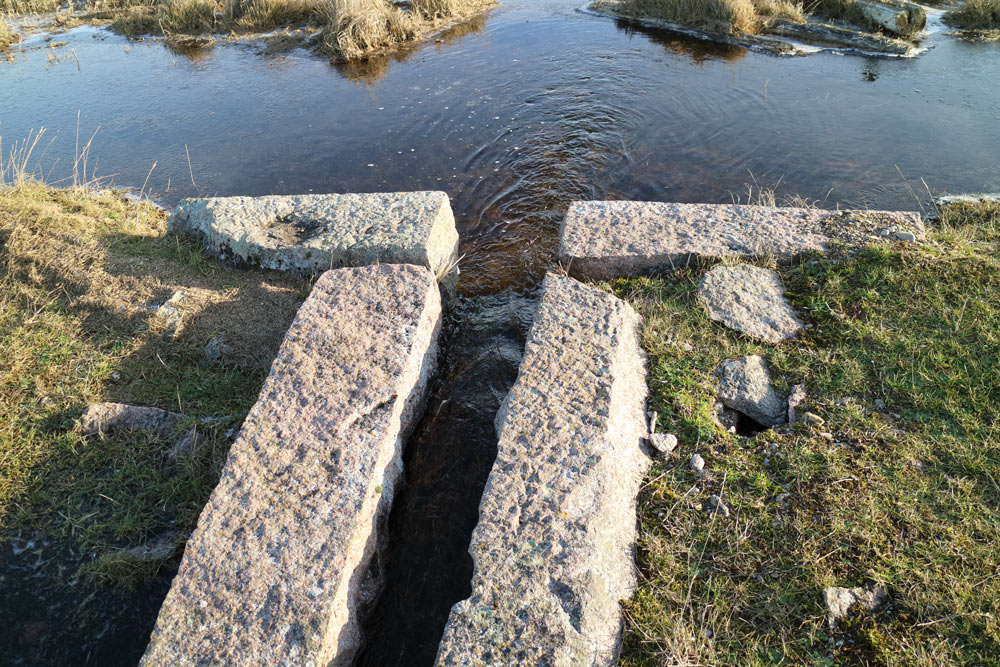 På den här sträckan finns rester av den gamla järnvägen, såsom grindstolpar vid passage av alvarväg, kvarlämnade sliprar och gjuten passage för vatten genom järnvägsvallen.