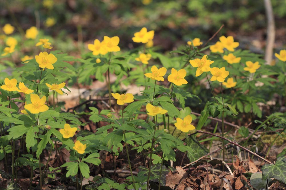 Under våren är blomningen av blåsippor stor med även röda och vita blåsippor.