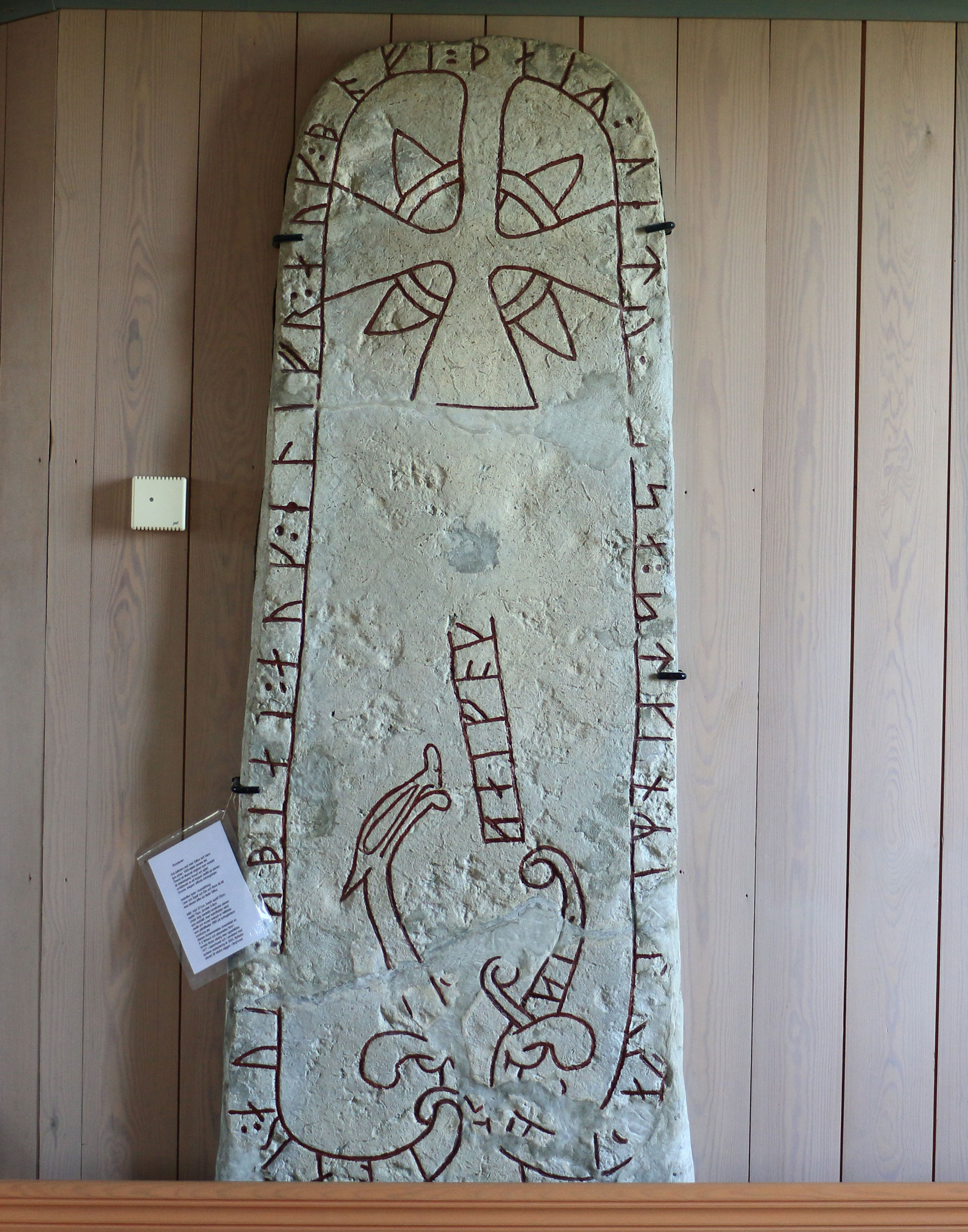 Under tidig medeltid användes stenen som lockhäll, med inskriftsidan vänd nedåt och murad ovanpå en hällkista, som påträffades 1960 på kyrkogårdens nordöstra del. Stenen konserverades omedelbart av R S Wibeck och placerades först i tornets första våning men ställdes upp 1977 i vapenhuset och i samband med kyrkans restaurering år 2000 flyttades stenen till västra väggen i långhuset.