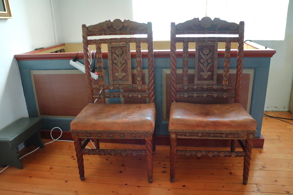 Korstolarna är snidade av Johan August Gustafsson (JAGS) och skänkta 1916 till kyrkan av honom. Han var en orginell träsmidare från trakten. Hans träskulpturer visas i J.A.G.S. museum, norr om kyrkan.