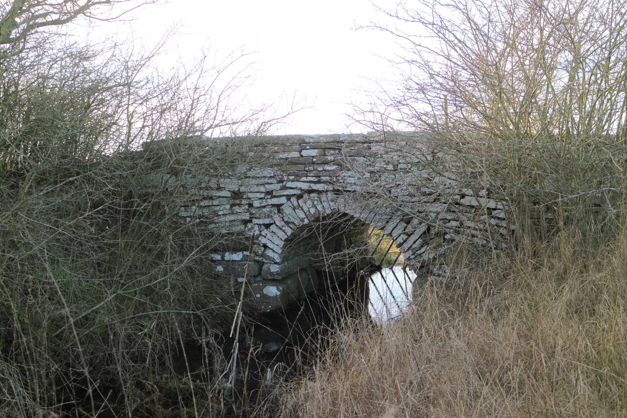 Stenvalvsbro på den gamla vägsträckningen av östra landsvägen söder om Mellby. Ett spann, 2 m långt och 2 m högt. Byggd av kalkstensflisor med gråstenar som sockel vid valvet.
