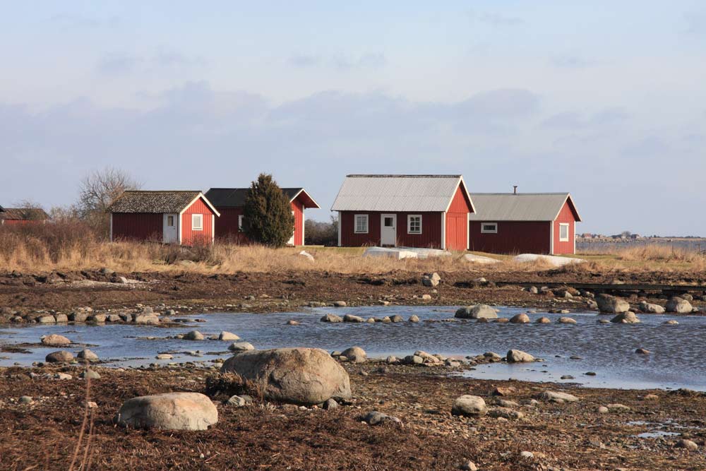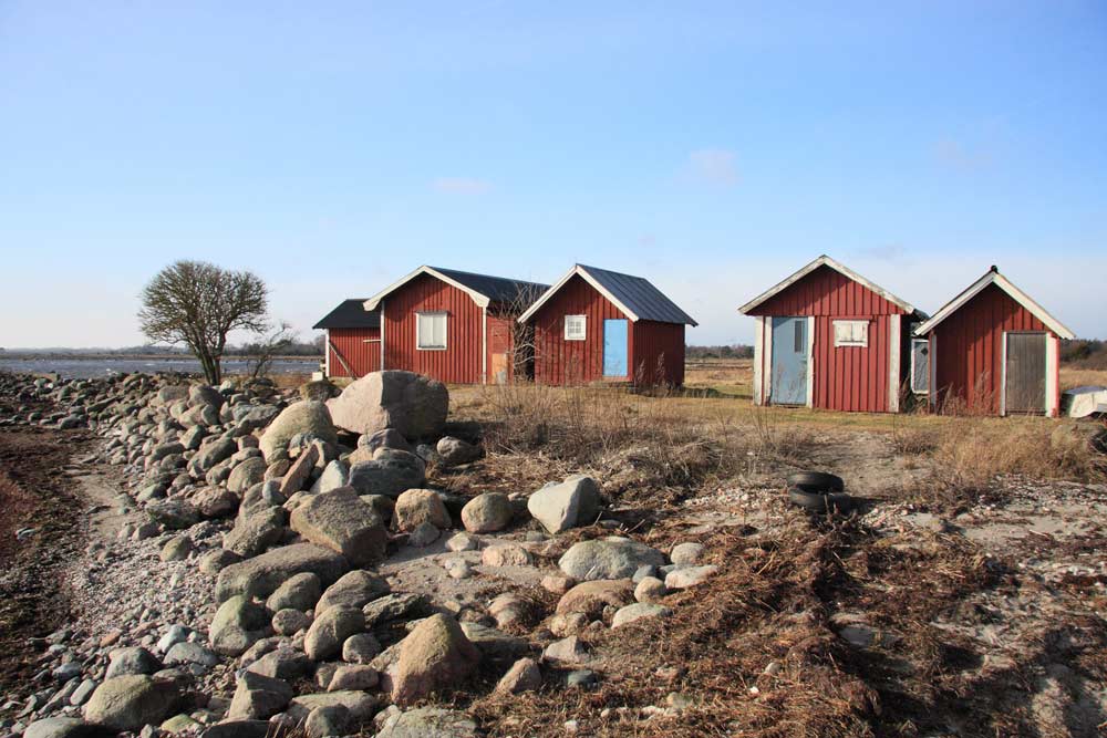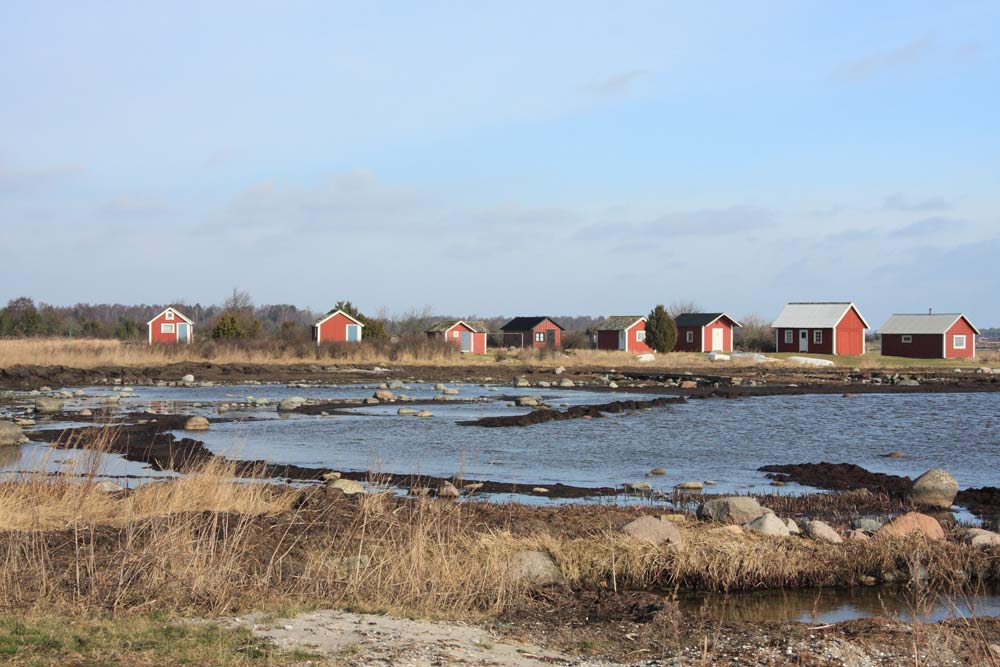 Ute vid kusten ligger här finns fina sjöbodar i trä som tillhör Störlinge by. På vägen ner till störlinge bodar passerar man Tjushög.