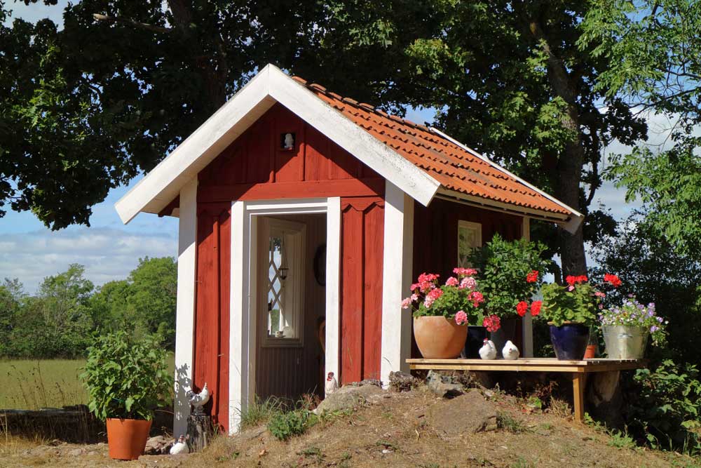 På fastighetens finns ett lusthus som varit utedass, hönshus och lekstuga. Norr om huvudbyggnaden finns i lövskogen resterna av en engelsk park anlagd 1950.