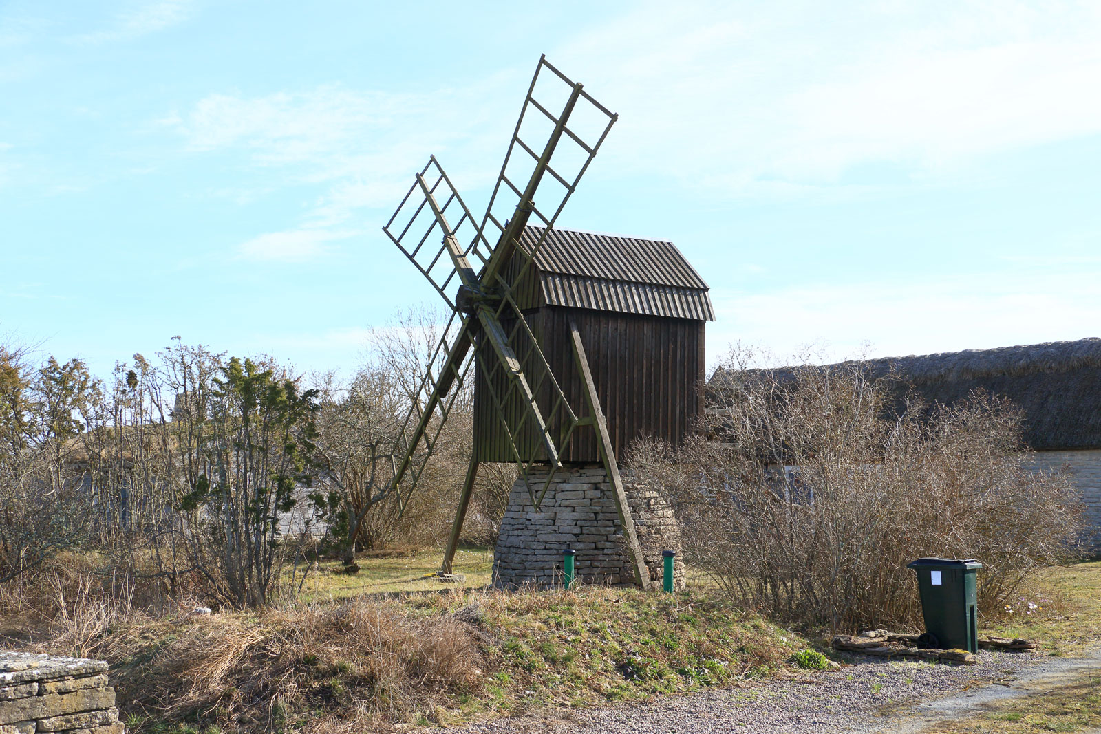 Den här väderkvarnen står på fastigheten BORGHOLM LÅNGERUM 1:46. Den har en stenfot som många andra kvarnar på norra Öland.